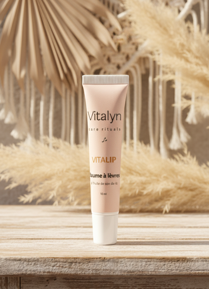 VITALIP repose sur la synergie d’ingrédients nobles, centrée autour de notre ingrédient signature: l’huile de son de riz et enrichie de cire d’abeille naturelle, huile de sésame, huile de coco, huile de ricin et vitamine E. Ensemble, ces actifs hydratent, protègent, régénèrent et subliment la peau fine des lèvres, tout en créant un fini doux et soyeux. Sa texture fondante enveloppe instantanément les lèvres d’un voile nourrissant sans effet collant, pour un rituel quotidien simple et sensoriel.